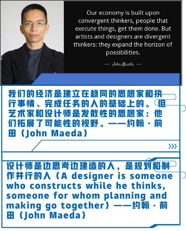 “灵感,”前田写道,“灵感是学习的终极催化剂:内在的动力胜过外在的奖励。相信比我们自己更伟大的事物(无论是一个人还是使命的信念会激发我们的自我信心并增加方向感。