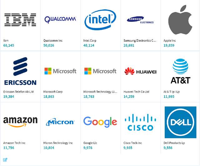 HPC领域主要玩家的专利文档数目