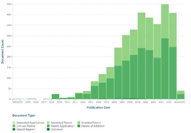 图7. 近年来“扇出晶圆级封装(Fan-Out Wafer-Level Packaging)”的专利申请日益增多